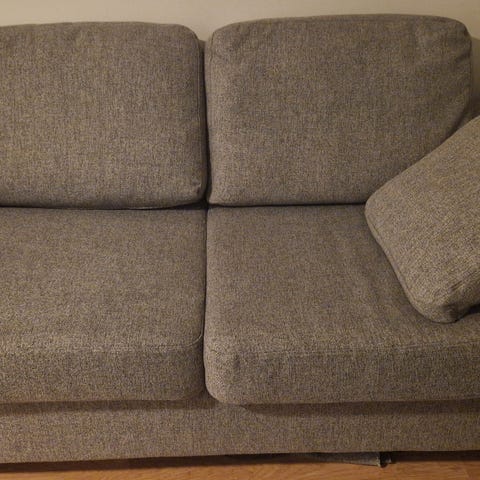 Kahden istuttava sohva, ei saa levitettyä sängyksi. Korkeus 43cm on istumakorkeus, selkänoja on sitten korkeampi. Nouto Isokyrö.