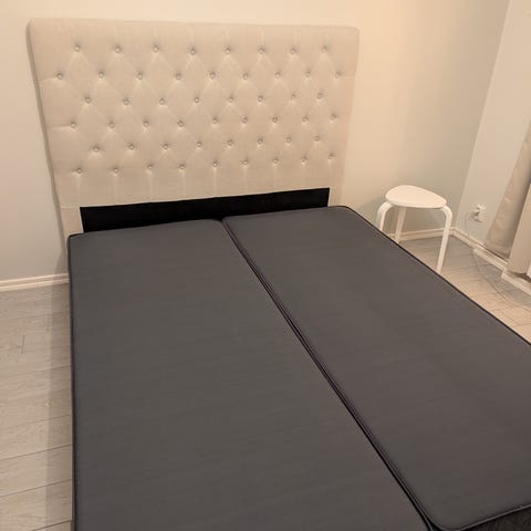 Myydään muuton alta sänky ja petari 160 cm leveä. Koostuu kahdesta osasta. Hyvä kunto ja erittäin mukava nukkua, petarin päällä käytetty suojaa. Yksi lauta vähän ratkennut pohjasta, mutta ei vaikuta käyttöön/kuntoon.