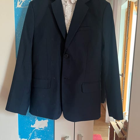 Tumman sininen juhlapuku pojalle koossa 134. Hoikka malli.