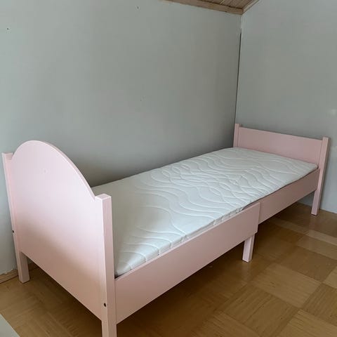 Sängyn mitat 100cm × 45cm. Patjan mitat noin. 90 cm × 40 cm.