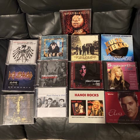 Useita eri artistien CD-levyjä ja CD-kotelo