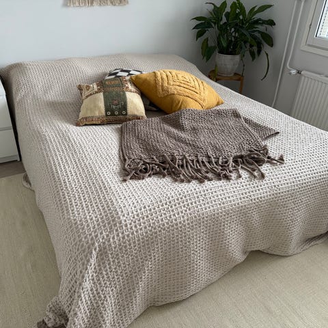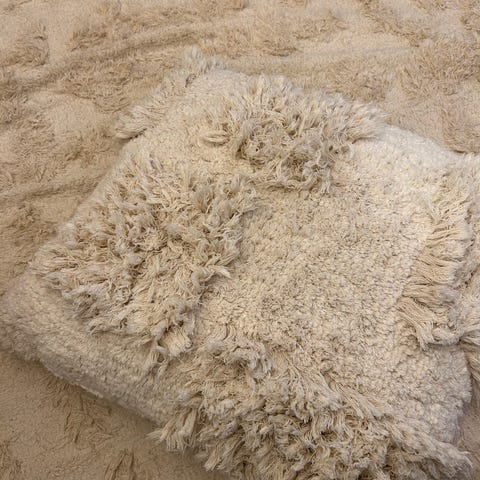 Valkoinen eripituisilla hapsuill! Tyyny on pestävä ja päällinen irtotettavissa!