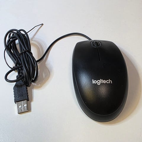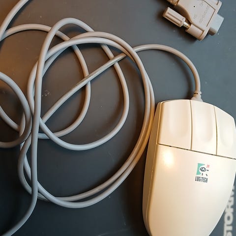 Vanha toimiva Logitech-hiiri 3 napilla, alkuperäinen malli 1990-luvulta.