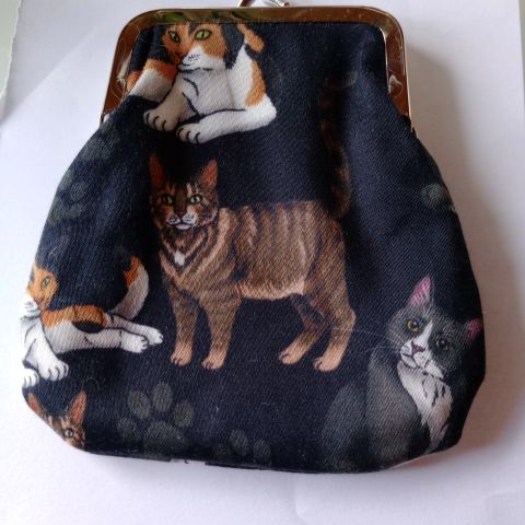 Lappilainen käsityö. Pieni kukkaro koko 12cmx11cm, valmistettu punaisesta huovasta,kiristysnyörit yläosassa., keltainen reunus ja poronkarvaiset yksityiskohdat,molemmin puolin.