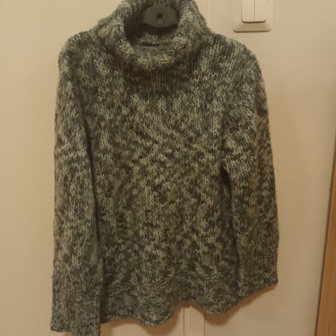 Valkoinen poolopaita neulepaita. Naiselle tai miehelle. Aika pitkät hihat. Koko XL ja merkki Zara.