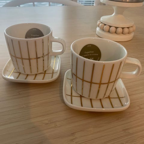 Max kerran käytetyt, käsin pestyt, kuin uudet. Valko-kulta, kultauksen vuoksi suositus käsin pesuun. Ilmalassa.