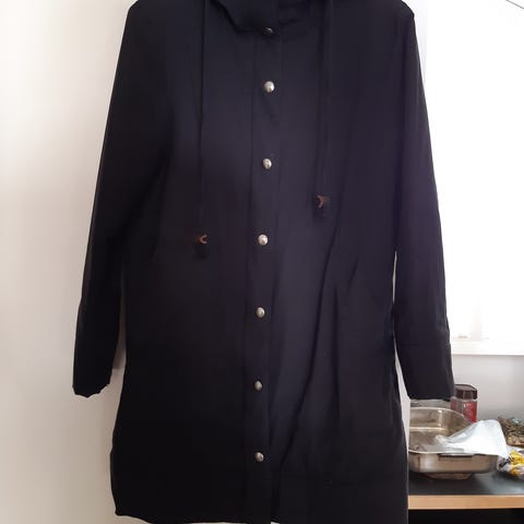Rento ja kevyt takki, jossa suora istuvuus. Tikattu unikko kuosi, jossa korkea kaulus, kaksisuuntainen metallinen vetoketju. KAI-KAI 60 cm, pituus 105 cm
