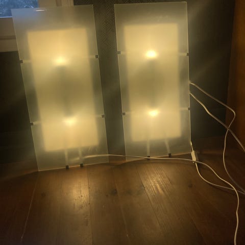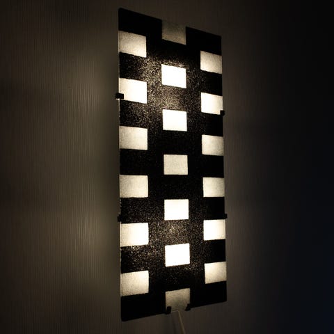 Myydään hieno hyväkuntoinen 1990- luvun vintage -design seinävalaisin. Suunnittelija Julia Treutiger. Lasipaneeli jossa abstraktisia kuvioita. Eri vihreän keltaisen ja tumman sävyisiä. Sis. kaksi lamppua, neljälle paikka. Vaaka sekä pysty -kiinnitys. Mitat: 95x26x11cm. Tuonti/postitusmahdollisuus sovittaessa!