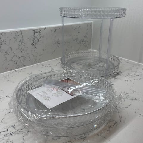 Myynnissä umbran pirouette pyörivä kosmetiikan säilytysteline / meikkiteline. Kahdessa hyllyssä tahra, katso kuvat. Taloudessa ei kotieläimiä ja kannattaa katsoa myös muut myynnissä olevat tuotteeni. 😊