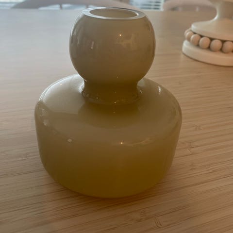 Haussa hyväkuntoinen Marimekon Flower maljakko värissä hunaja. Tarjoa hinnan ja kuvan kera.