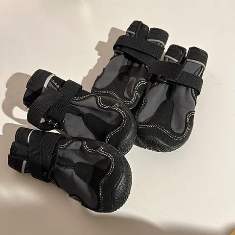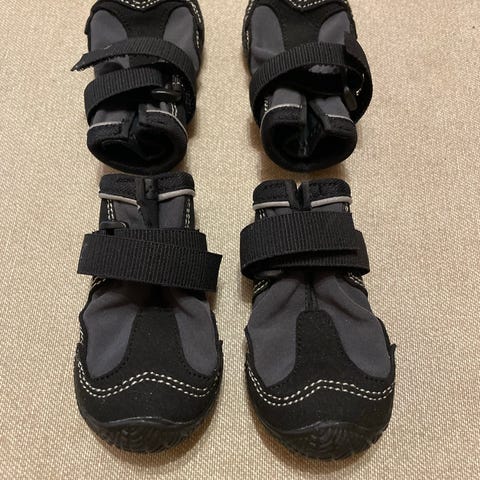 Feel Active koirantossut heijastin nauhoilla. Koko 2 (ostettu yorkshiren terrierille). Tossut ovat siniset ja varustettu heijastavilla nauhoilla näkyvyyden parantamiseksi. Sopivat koirille suojaamaan tassuja erilaisissa olosuhteissa. Hengittävät, veden- ja tuulenkestävät. Yhteensä 4kpl (ostettu 2kpl pussissa, jonka ovh 24,99€)