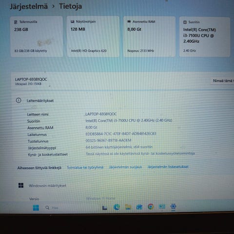 Myydään siistikuntoinen ja toimiva Lenovo V130-15IGM -kannettava. Sopii hyvin peruskäyttöön kuten netin selailuun, opiskeluun, etätyöhön ja toimisto-ohjelmiin.