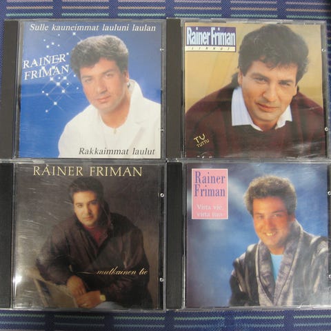 Myydään kotimaisten artistien cd-levyjä 3,00 euroa kappale. Kaikki cd:t kuunneltu ja todettu toimiviksi. Cd:ssä voi olla naarmuja & kansipapereissa jälkiä/omistuskirjoituksia, mutta cd-kotelot ovat ehjät. Postituskulut ostajalle ja noutokin sovittavissa.