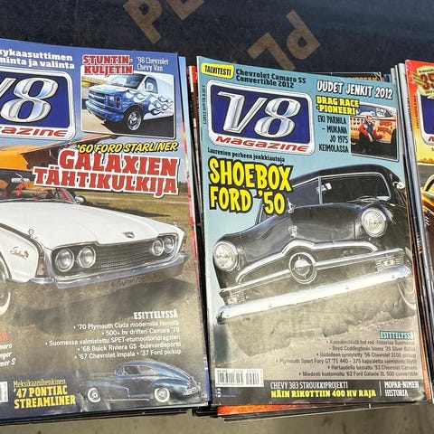 Myytävänä 2010-luvun V8 Magazinet. Poislukien 7/2015 numero. 1/2016 numerossa ei ole kansia.