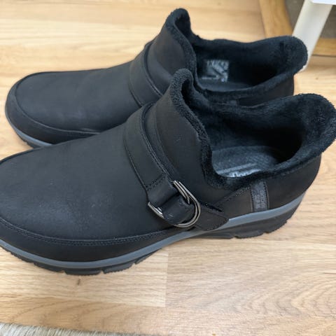 Skechers Muut kengät koko 40 ruskea. Kengissä on lämmin vuori ja slip-on-malli, sopivat viileämpiin olosuhteisiin. Ulkopohja on kumia ja materiaali näyttää olevan mokkaa tai mokkanahkaa muistuttava. Kengät ovat naisten mallia.
