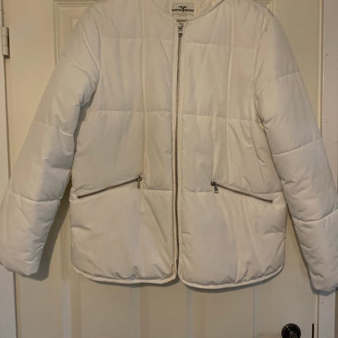Myydään hyväkuntoinen valkoinen talvitakki, koko L. Hinta 15€
