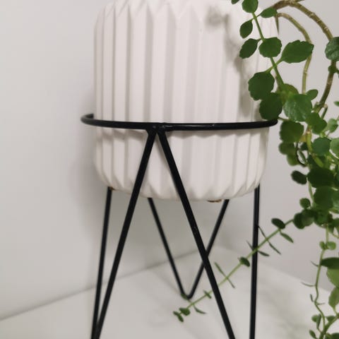 Musta kukkaruukku, kukkateline. Kuin uusi. Korkeus 50cm, leveys 15cm