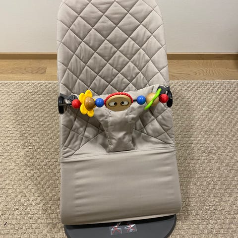 BabyBjörn Bouncer Bliss vauvan keinu/sitteri harmaassa ja hiekan väreissä. Sitterissä on pehmustettu, tikattu kangaspinta ja turvavaljaat. Sopii vauvoille ja tarjoaa tukea ja mukavuutta. Keinussa on kiinnitettävä lelu, joka stimuloi vauvan aisteja.