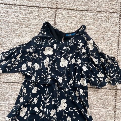 Ralph Lauren silkkipusero, läpikuultavaa silkkiä, keskellä röyhelö, koko XL. Monivärinen mutta pääsävy murrettu vihertävä ruskea. Kauniit kuultava RL kuvioidut napit. Upeassa kunnossa, vain kainaloissa näkyy käyttö, kangas rypistynyt.