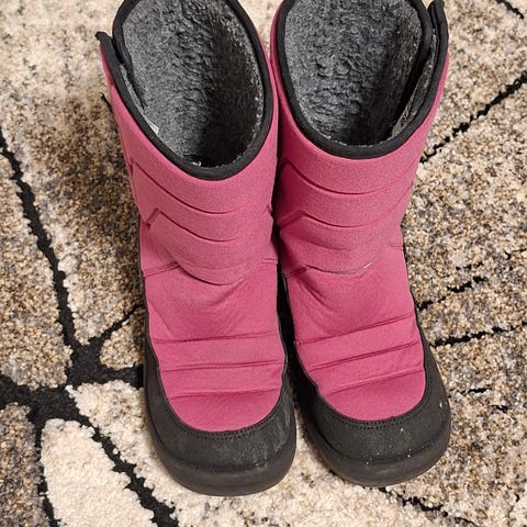 Kuoma-merkkiset talvikengät kokoa 35. Olleet yhden tytön käytössä. Hyvä käytetty kunto. Pinkki pohjaväri, jossa sydänkuvioita (heijastavat). Sisäpohjan mitta n. 22 cm.