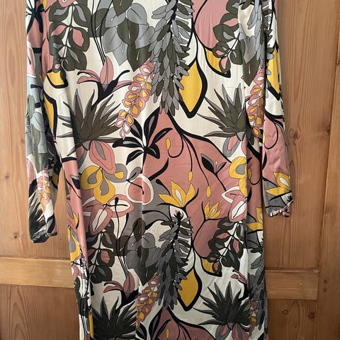 Filippa K silkkimekko (95 5 silkki, 5 % elastaani). Koko M. Kainalo-kainalo 50 cm, pituus niska-helma 83 cm. Vuoriton, ohut.
