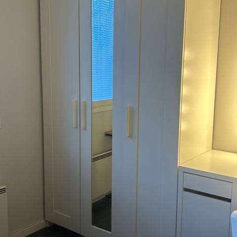 Vaatekaappi/ eteiskaappi ,jossa tilaa ripustaa takkeja/vaatteita ja kolme alakaappia, jossa myös tilaa. Ainoa virhe on, että mies asentanut hieman ylemmäs kaapeista ja ostaja saa tämän korjauksen tehdä.
