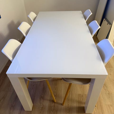 Myydään Rowico 4-6 hengen ruokailuryhmä. Mukaan tulee ruokapöydän jatkopala (ei kuvaa) ja yhteensä 6 Ikean tuolia (joista 4 näkyvillä kuvissa). Väri tammi. Käytetty hyvä kunto, läheltä katsottuna pieniä käytön jälkiä taaperon ruokailusta pöydän pinnassa ja luultavasti hieman tummempi kuin upouutena. Yleisilme on edelleen hyvin siisti. Pöytää saa tulla katsomaan. Hp. 500e tai järkevä tarjous.