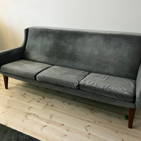60-luvun siro kaunis sohva, kangas valkoinen sametti, siisti. Verhoiltu n. 5 vuotta sitten, ollut erittäin vähällä käytöllä. Vain nouto, käteismaksu tai MobilePay