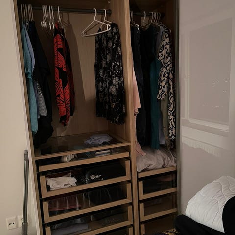 Myydään valkoinen peiliovillinen vaatekaappi malli Ikea Tyssedal 002.981.28. Kuin uusi. Kaapin sisällä hylly ja vaatetanko, lisäksi yksi laatikko.