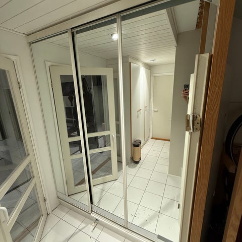 Peilikaapissa toisella puolella on hyllyt, toisella puolella on vaatetanko. Peilikaapin kiskot on kiinnitetty lattiaan ja kattoon. Kysy lisätietoja ja -kuvia viestillä. Vain nouto Espoosta.