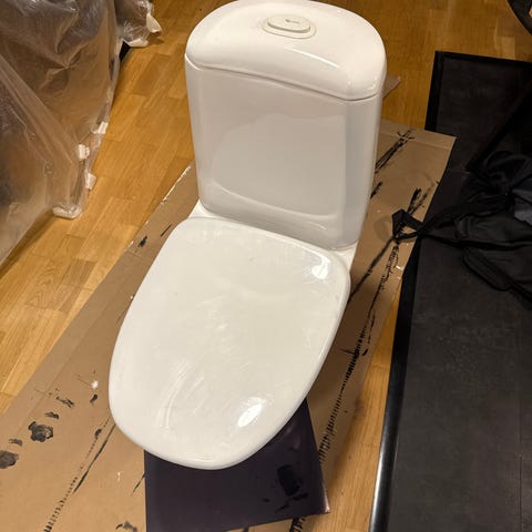 Toimiva perus wc. Kannessa ei mitään halkeamia. Posliini on hyvässä kunnossa.