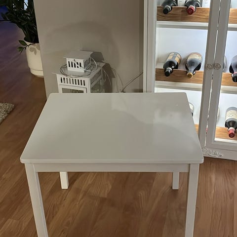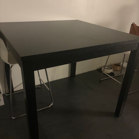 Pöydän pituus 125cm, kahdella jatko-osalla 180cm, leveys 85cm.
