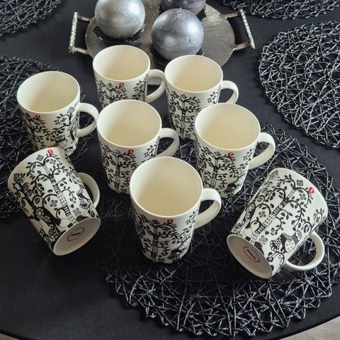 Iittalan Taika-sarjaa mustavalkoiset mukit. Vetoisuus 4dl. Osa täysin käyttämättömiä, yhdessä pieni tahra.