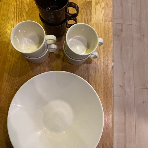 Iittala Teema mukit, 5 kappaletta, valkoinen väri. Hyvässä kunnossa.