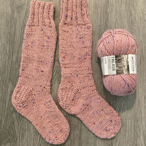 Lämpimät ja kestävät, lankana 7 Veljestä (Novita) – 75 % villaa ja 25 % polyamidia.