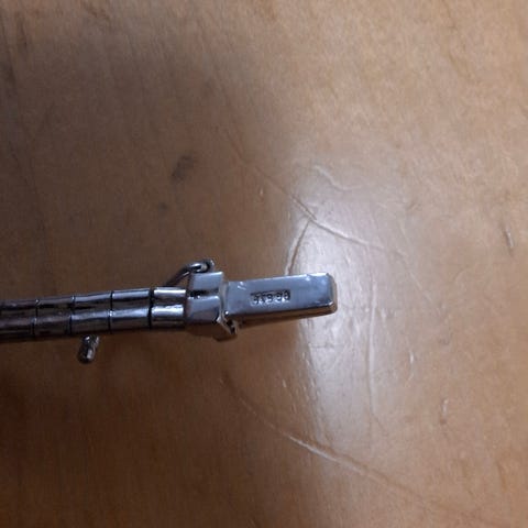 Hopeinen modernisti muotoiltu rannekoru.