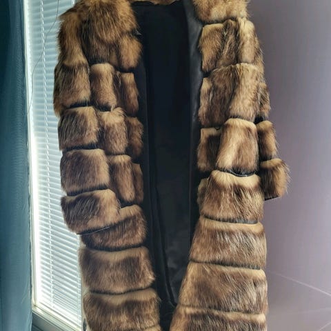 Myydään hyväkuntoinen täyspitkä aito turkistakki, todennäköisesti valmistettu 1990-luvulla. Todennäköisesti nutriaa (myyräkoira/coypu), joka on tunnettu kestävyydestään ja lämmittävyydestään.