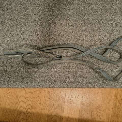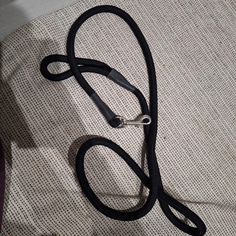 Kevyt talutushihna heijastinkorostuksilla ja pehmustetulla kahvalla. Noin 2m pitkä, kevyellä pistoolilukolla. Ollut hetken käytössä pentukoiralla.