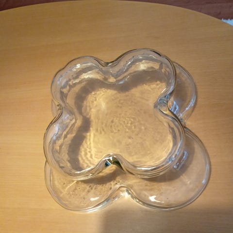 Lasinen tarjoilu astia halkaisija leveys 33centtiä jalan kanssa 2,5 centtiä tosi kaunis.