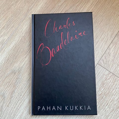 Charles Baudelaire Pahan kukkia, kovakantinen paperikansilla, Otava, s. 203. Paperikansilla pientä repeämää ja kulumaa, kannen sisäsivulta leikattu ex Libris merkintä siististi pois