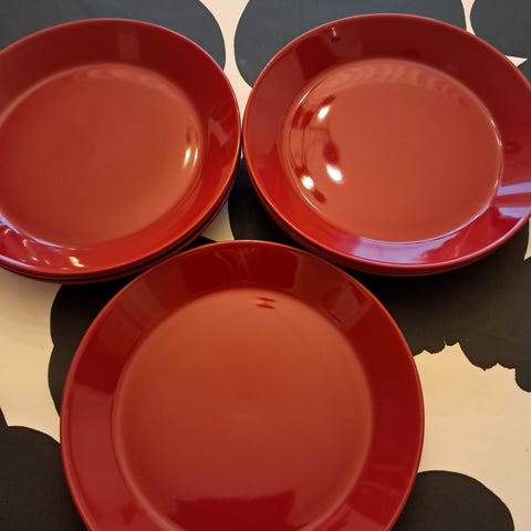 Myydään punaiset Teema syvät ruokalautaset/ keittolautaset/pastakulhot. Ostettu Iittalan liikkeestä keväällä. Siistit. Nouto Alajärvi, myös omien menojeni mukaan Lapua ja Seinäjoki. Hinta yhteensä 50e.