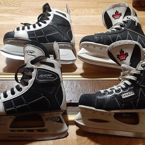 CCM Jääkiekko luistimet lasten koko 37. Terissä ruostetta, mutta muuten hyväkuntoiset yksilöt.