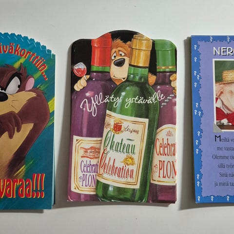 Ystävänpäivä lähestyy! Kolme kaunista korttilaatikkoa lahjaksi ystäville vaaleanpunaisin, roosanvärisin ja vaaleansinisin reunaompelein. Laatikot sellofaanikääreissä. Tehty uusista ystävänpäiväkorteista. Tällaisia tekivät mummoni aikoinaan koulukäsitöinä. Anna lahjaksi sellaisenaan tai vaikka mielikaramellien kera. Hinta per kappale. Nouto ja posti ok.