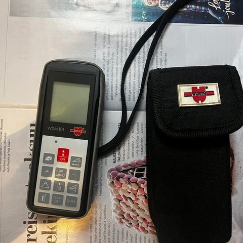 Laseretäisyysmittari Wurth WDM 101 tarpeettomana. Patterien suojakansi kateissa..nyt edullisesti, P.0452344213 Miel. Nouto Raisiosta