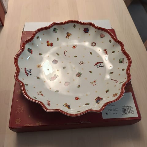 Myydään uusi ja käyttämätön Villeroy & Bochin Toy's Delight sarjan jalallinen kakkuvati. Niistä se isompi. Tuote on yhä alkup.pakkauksessaan.