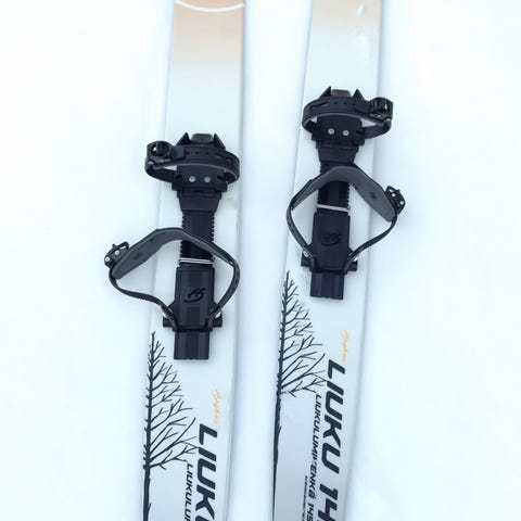 Myyntiin haghusin 125cm pitkät liukulumikengät joihin itse liimattu pitokarva. Nämä pitää jyrkässäkin mäessä eikä luista sivuttain mikä näissä yleensä ongelmana. Toki luisto on huonompi mitä vakiona. Metsikköön ja mäkiseen maastoon hyvät liukulumikengät.