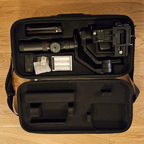 Aika hyvässä kunnossa oleva action kameran 3-akselinen gimbal vakautin. Testattu Osmo Action 1 kanssa - muoto ja paino mahtuu juuri ja juuri, eli vanhemmat goprot optimaalisempia.