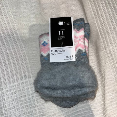 Ihanan pehmeät harmaat pörrösukat. Ei tietoa merkistä tai materiaalista. N. kokoa 39.