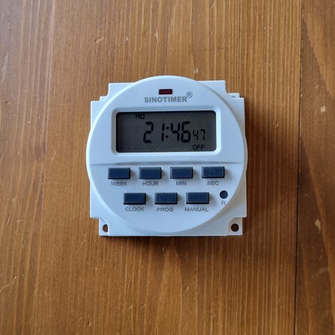 Hyvin vähäisessä käytössä olleet elektroniset aikakytkimet monelaisten sähkölaitteiden ohjaamiseen. Nämä neljä (4) aikakytkintä myydään yhtenä settinä tosi edulliseen hintaan. Kaikkiin löytyy mm. suomen- ja ruotsinkieliset käyttöohjeet (syöttämällä merkin ja tyyppimerkinnän esim. Googleen) netistä, jos sellaisiin on tarvetta.