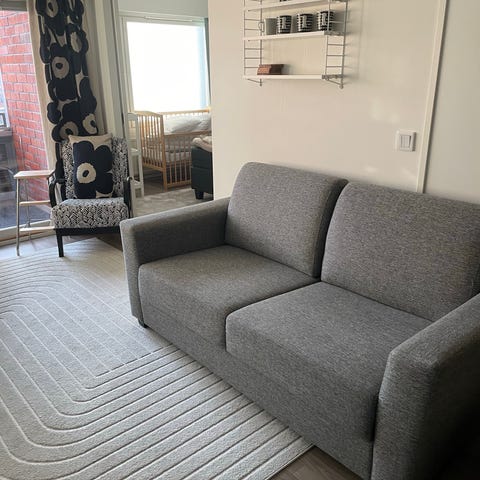 Väri on harmaa. Divaanin alla on tilava säilytyslaatikko.